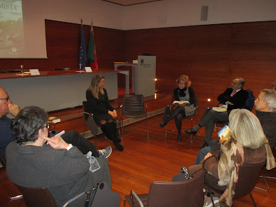 Se eu tivesse de escolher uma sessão marcada pela animação optaria por esta. Não só apanhei um tempo enganador, que trocou as voltas na minha viagem de regresso, como uma sessão muito divertida e tudo por causa da apresentadora, a minha amiga professora e poeta Isabel Rosete, que fez uma apresentação muito divertida e (quase) circense, com muita filosofia, poesia e música à mistura!